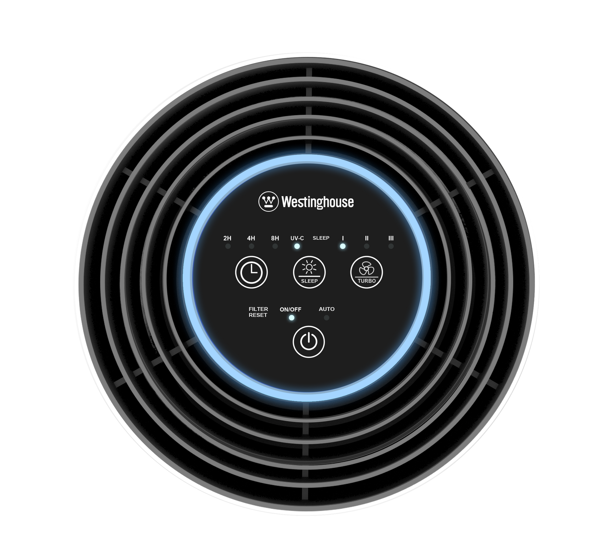 • 4 fan speed settings: I, II, III, and Turbo.